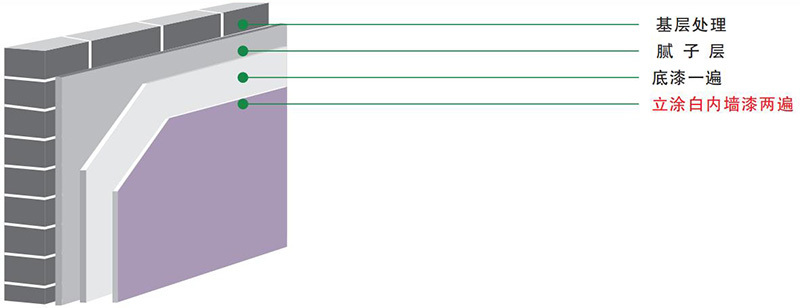 底漆:梨樹園多功能抗堿底漆一遍。面漆:墻面漆涂刷二遍。