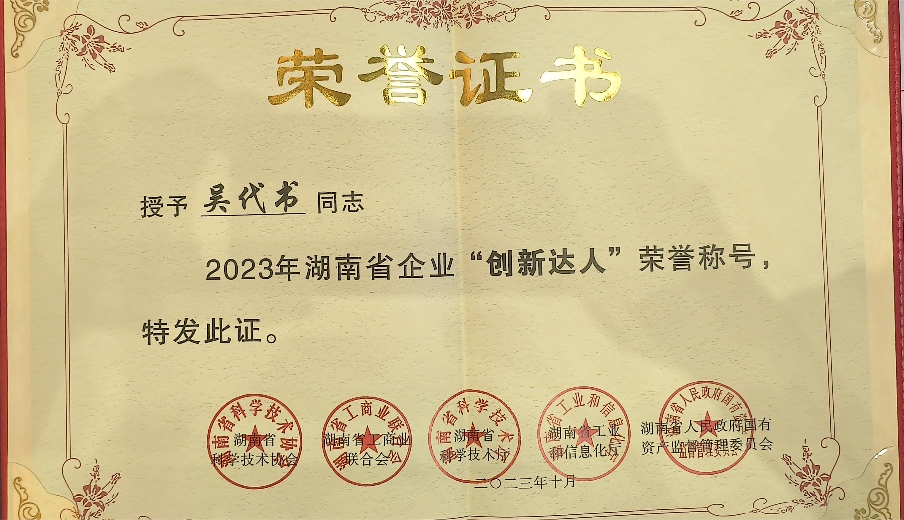 喜訊!恭喜吳代書(shū)總監(jiān)榮獲 湖南省企業(yè)“創(chuàng)新達(dá)人”!